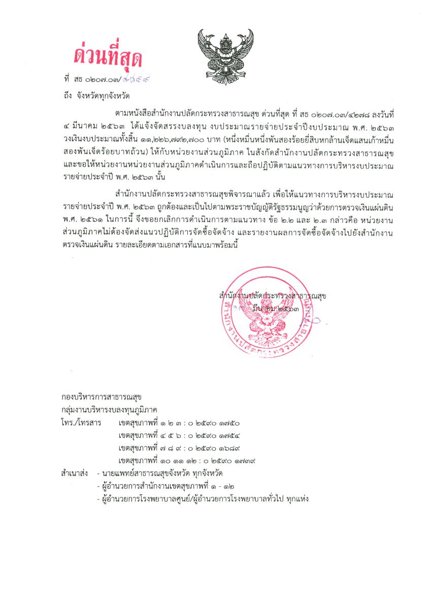 แจ้งแก้ไขแนวทาง ข้อ2.2 และ2.3 ในหนังสือแจ้งจัดสรรงบลงทุน งบประมาณรายจ่ายประจำปีงบประมาณ พ.ศ. 2563