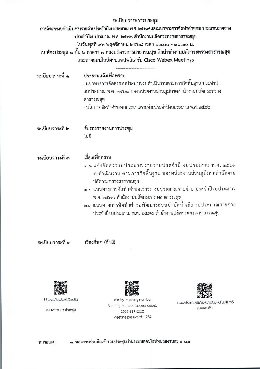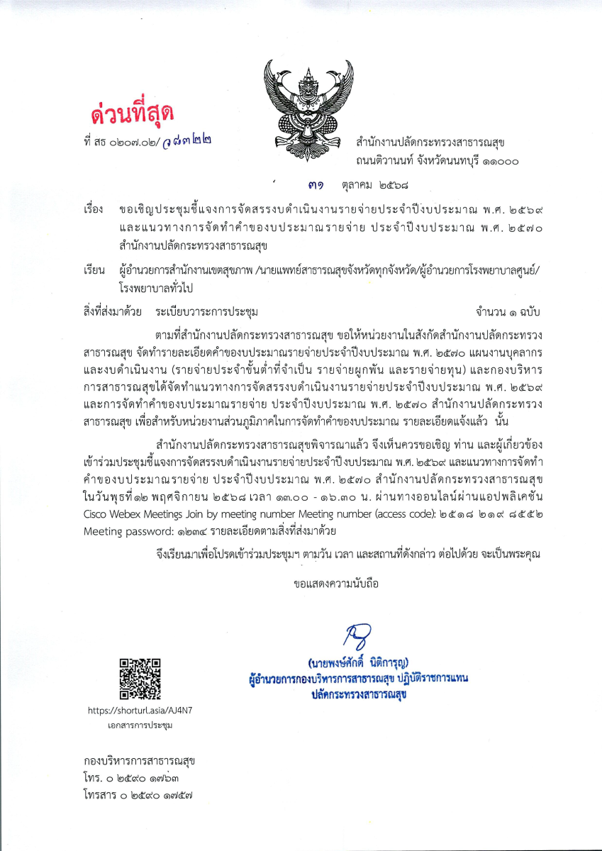 ขอเชิญประชุม การจัดสรรงบดำเนินงาน ปีงบประมาณ พ.ศ. 2569 และแนวทางการจัดทำคำขอฯ ปีงบประมาณ พ.ศ. 2570