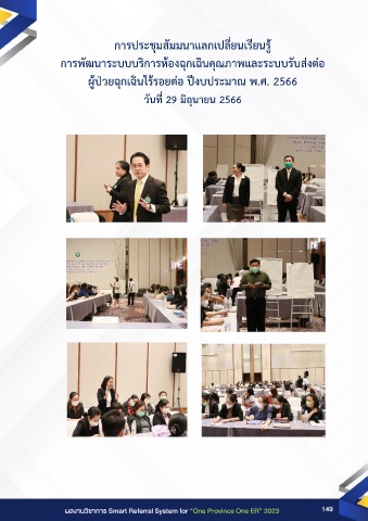 กำรประชุมสัมมนำแลกเปลี่ยนเรียนรู้ กำรพัฒนำระบบบริกำรห้องฉุกเฉินคุณภำพและระบบรับส่งต่อ ผู้ป่วยฉุกเฉินไร้รอยต่อ ปีงบประมำณ พ.ศ. 2566 วันที่ 29 มิถุนำยน 2566 ผลงานวิชาการ Smart Referral System for “One Province One ER” 2023 149