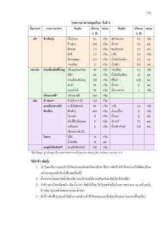 มื้ออาหาร รายการอาหาร วัตถุดิบ ปริมาณ หน่วย วัตถุดิบ ปริมาณ หน่วย