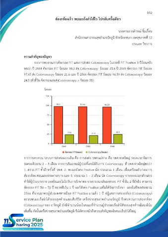 97.65 ส่ง Colonoscopy ร้อยละ 21.6 และ ปี 2566 คัดกรอง FIT ร้อยละ 96.59 ส่ง Colonoscopy ร้อยละ