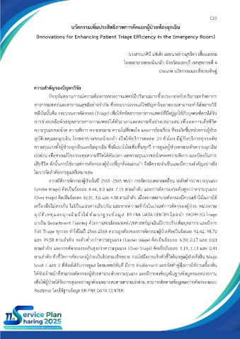 Edit Triage ทุกราย ทำให้ในปี 2566-2568 ความถูกต้องของการคัดกรองผู้ป่วยคิดเป็นร้อยละ 92.42, 98.70