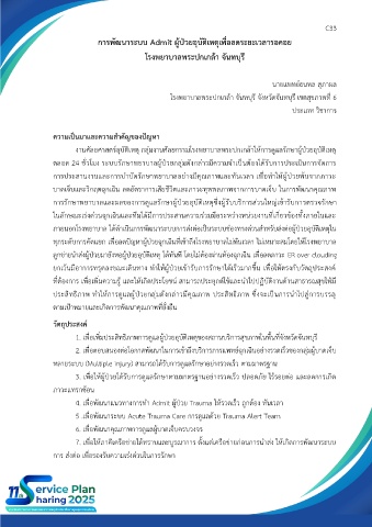การพัฒนาระบบ Admit ผู้ป่วยอุบัติเหตุเพื่อลดระยะเวลารอคอย
