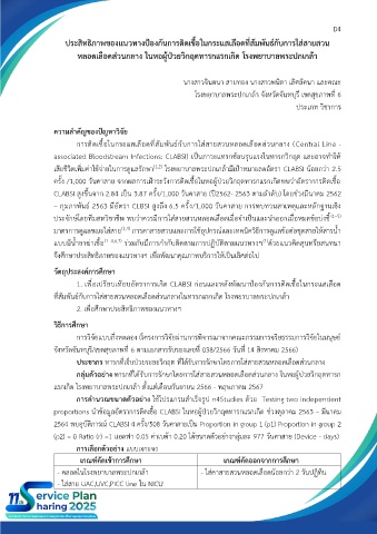 ประสิทธิภาพของแนวทางป้องกันการติดเชื้อในกระแสเลือดที่สัมพันธ์กับการใส่สายสวน