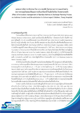 ต่อการควบคุมโรคหอบหืดและการกลับมารักษาซ้ำในเด็กวัยเรียน โรงพยาบาลตรัง