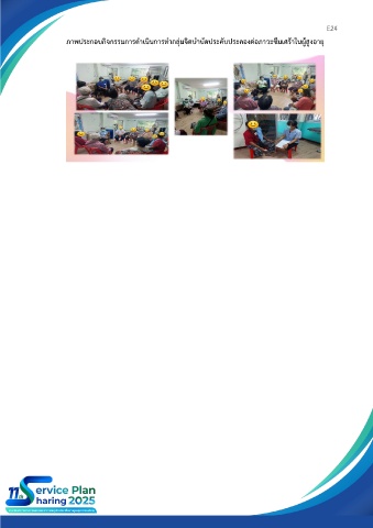 E24 ภาพประกอบกิจกรรมการดำเนินการทำกลุ่มจิตบำบัดประคับประคองต่อภาวะซึมเศร้าในผู้สูงอายุ