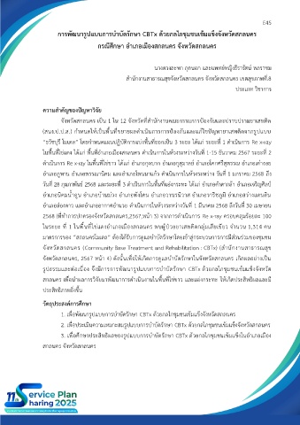 การพัฒนารูปแบบการบำบัดรักษา CBTx ด้วยกลไกชุมชนเข้มแข็งจังหวัดสกลนคร