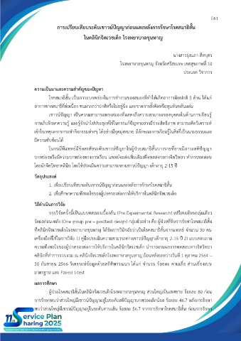 การวิจัยครั้งนี้เป็นแบบทดลองเบื้องต้น (Pre Experimental Research) เปรียบเทียบกลุ่มเดียว