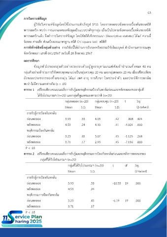 กลุ่มทดลอง (n=20) กลุ่มควบคุม (n=20) t Sig