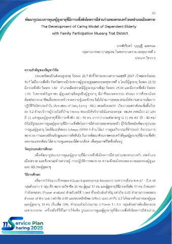 เพื่อพัฒนารูปแบบการดูแลผู้สูงอายุที่มีภาวะพึ่งพิงโดยการมีส่วนร่วมของครอบครัว เขตอำเภอ