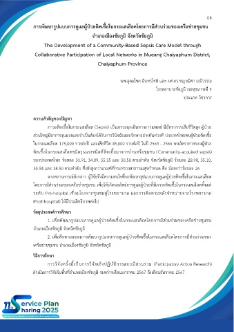 โดยการมีส่วนร่วมของเครือข่ายชุมชน เพื่อให้เกิดผลลัพธ์การดูแลผู้ป่วยที่มีภาวะติดเชื้อในกระแสเลือดตั้งแต่