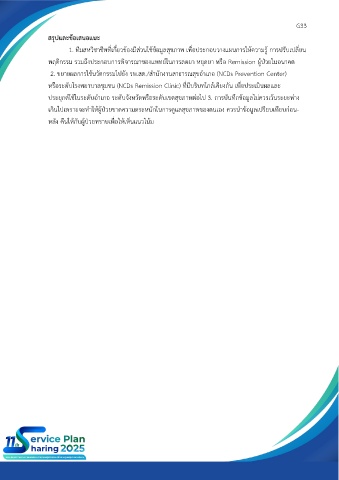 1. ทีมสหวิชาชีพที่เกี่ยวข้องมีส่วนใช้ข้อมูลสุขภาพ เพื่อประกอบวางแผนการให้ความรู้ การปรับเปลี่ยน