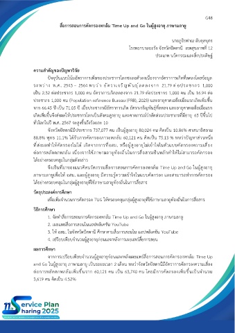 จากการเปรียบเทียบจำนวนผู้สูงอายุก่อนและหลังเผยแพร่สื่อการสอนการคัดกรองหกล้ม Time Up