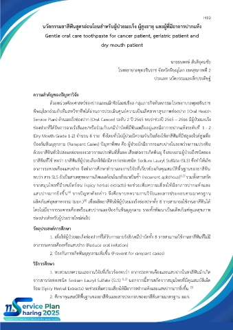 1. เพื่อให้ผู้ป่วยมะเร็งช่องปากที่ได้รับการฉายรังสี/เคมีบำบัดทั้ง 8 รายสามารถใช้งานยาสีฟันที่ไม่มี