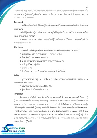 1. เพื่อใช้เป็นสื่อ/เครื่องมือ ให้ความรู้ผู้ป่วยเรื่องการสวนหัวใจ/การขยายหลอดเลือดหัวใจด้วยบอลลูน
