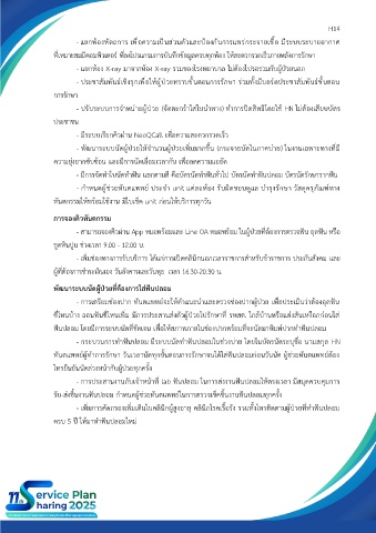 - พัฒนาระบบนัดผู้ป่วยให้จำนวนผู้ป่วยเพิ่มมากขึ้น (กระจายนัดในภาคบ่าย) ในงานเฉพาะทางที่มี