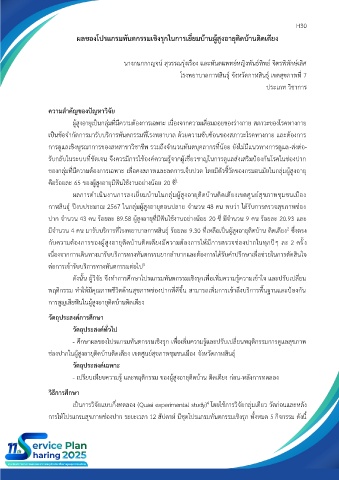 ผลการดำเนินงานการลงเยี่ยมบ้านในกลุ่มผู้สูงอายุติดบ้านติดเตียงเขตศูนย์สุขภาพชุมชนเมือง
