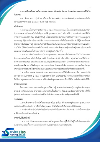 4. การเปรียบเทียบค่าเฉลี่ยการตรวจ Serum Albumin, Serum Potassium ก่อนและหลังได้รับ