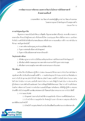 ระเบียบวิจัย เป็นวิจัยแบบปฏิบัติการ (Action Research) ใช้กระบวนการ PDCA ในการดำเนินการ