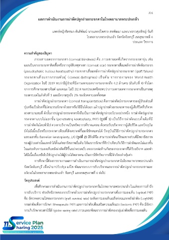 การรับบริการ ประสิทธิภาพของการรักษาด้วยการผ่าตัดปลูกถ่ายกระจกตาเพื่อการมองเห็น (optical PKP)