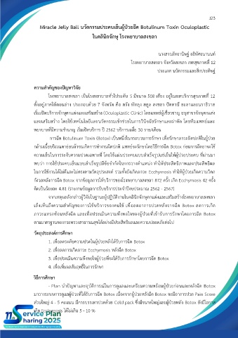 - Plan นำปัญหาและอุบัติการณ์ในการดูแลและเตรียมความพร้อมผู้ป่วยก่อนและหลังฉีด Botox