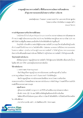 เพื่อพัฒนารูปแบบการดูแลผู้ป่วยเบาหวานชนิดที่ 2 ให้เข้าสู่ระยะสงบ ไม่ต้องใช้ยาเพื่อลดระดับน้ำตาล