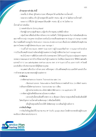 - กลุ่มเป้าหมายที่สนใจเข้ารับการรักษาเบาหวานชนิดที่ 2 ให้เข้าสู่ระยะสงบ รับการประเมินพฤติกรรม