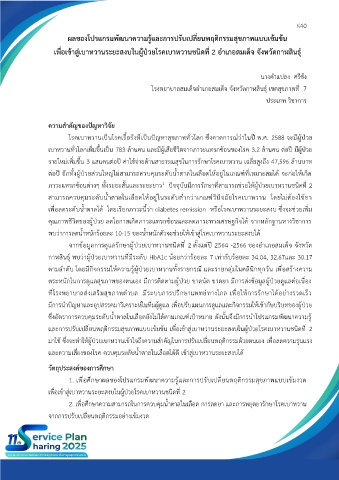 ซึ่งอัตราการควบคุมระดับน้ำตาลในเลือดยังไม่ได้ตามเกณฑ์เป้าหมาย ดังนั้นจึงมีการนำโปรแกรมพัฒนาความรู้