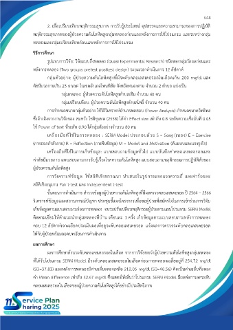 (SD=37.83) และหลังการทดลองมีค่าเฉลี่ยลดลงเหลือ 212.05 mg/dl (SD=40.56) คิดเป็นค่าเฉลี่ยที่ลดลง