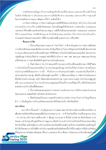 ใช้จำนวนและร้อยละ 2) สถิติเชิงอนุมาน สำหรับตัวแปรแบบต่อเนื่อง ใช้การวิเคราะห์เปรียบเทียบ