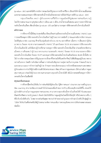 (p-value< .001) และหลังได้รับการจัดการตนเองโดยใช้รูปแบบการปรึกษาชีวิต 6 เดือนทำให้ค่าน้ำตาลเฉลี่ยสะสม