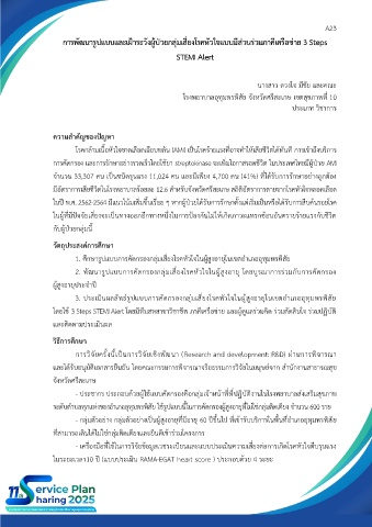 1. ศึกษารูปแบบการคัดกรองกลุ่มเสี่ยงโรคหัวใจในผู้สูงอายุในเขตอำเภออุทุมพรพิสัย