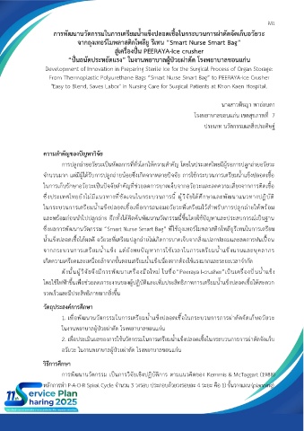การพัฒนานวัตกรรมในการเตรียมน้ำแข็งปลอดเชื้อในกระบวนการผ่าตัดจัดเก็บอวัยวะ
