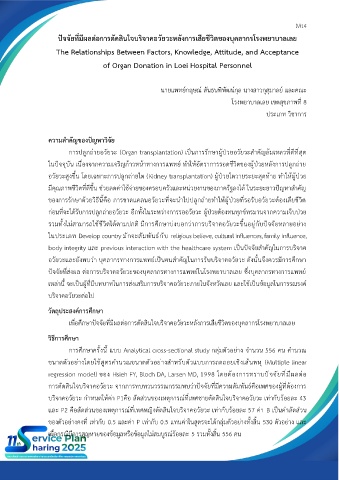 เพื่อศึกษาปัจจัยที่มีผลต่อการตัดสินใจบริจาคอวัยวะหลังการเสียชีวิตของบุคลากรโรงพยาบาลเลย