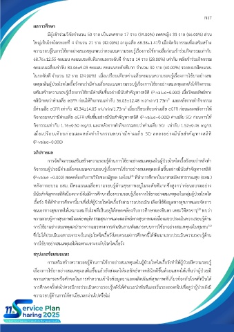 กิจกรรมเท่ากับ 1.76±0.50 mg/dl และหลังจากทำกิจกรรมพบว่าค่าเฉลี่ย SCr เท่ากับ 1.52±0.46 mg/dl