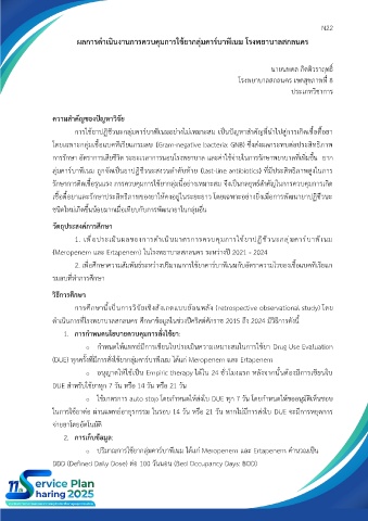 ผลการดำเนินงานการควบคุมการใช้ยากลุ่มคาร์บาพีเนม โรงพยาบาลสกลนคร