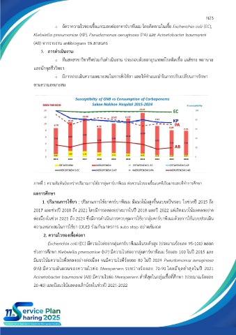 ภาพที่ 1 ความสัมพันธ์ระหว่างปริมาณการใช้ยากลุ่มคาร์บาพีเนม ต่อความไวของเชื้อแบคทีเรียแกรมลบที่ทำการศึกษา