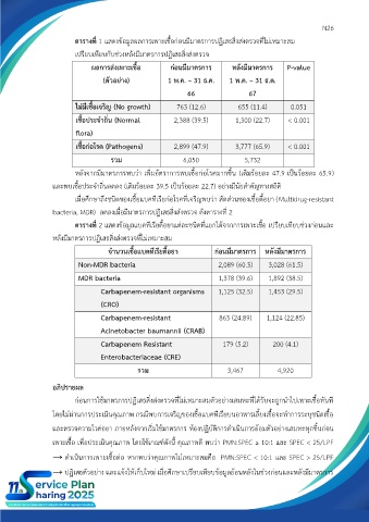 bacteria, MDR) ลดลงเมื่อมีมาตรการปฏิเสธสิ่งส่งตรวจ ดังตารางที่ 2
