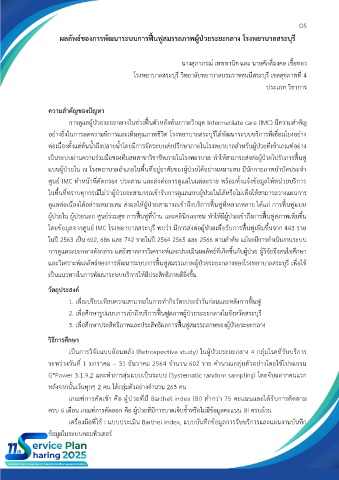 การดูแลระยะกลางดังกล่าว แต่ยังขาดการวิเคราะห์และประเมินผลลัพธ์ที่เกิดขึ้นกับผู้ป่วย ผู้วิจัยจึงสนใจศึกษา
