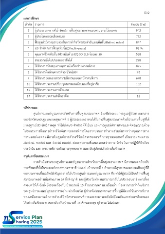 ของประชาชนซึ่งผลลัพธ์สำคัญของการให้บริการศูนย์การแพทย์บูรณาการฯ คือ ทำให้ผู้ป่วยได้รับบริการฟื้นฟู