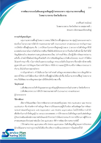 การพัฒนาระบบบันทึกและฐานข้อมูลผู้ป่วยระยะกลาง กลุ่มงานเวชกรรมฟื้นฟู
