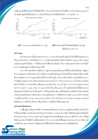 รูปที่ 1 ระยะเวลาการเดินได้ระหว่าง 2 กลุ่ม รูปที่ 2 ระยะเวลาทำกิจวัตรประจำวันได้ระหว่าง 2 กลุ่ม