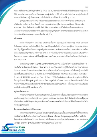 มั่นใจของกลุ่มตัวอย่างได้อย่างมีนัยสำคัญ การให้ข้อมูลเชิงลึกเกี่ยวกับการดูแลผู้ป่วย Home Ventilator
