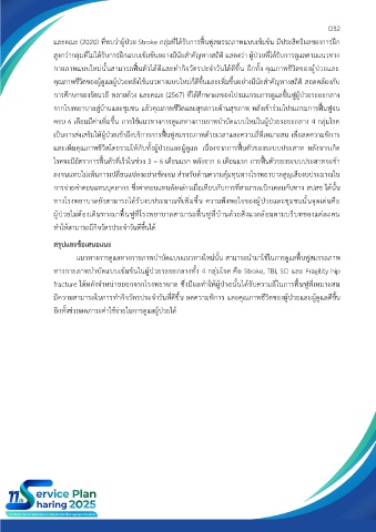 และคณะ (2020) ที่พบว่าผู้ป่วย Stroke กลุ่มที่ได้รับการฟื้นฟูสมรรถภาพแบบเข้มข้น มีประสิทธิผลของการฝึก