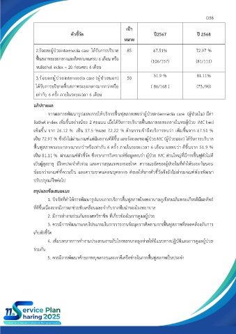 เป็น 81.11 % ผ่านเกณฑ์ตัวชี้วัด ซึ่งจากการวิเคราะห์ข้อมูลพบว่า ผู้ป่วย IMC ส่วนใหญ่ที่มีการฟื้นฟูตัวไม่ดี