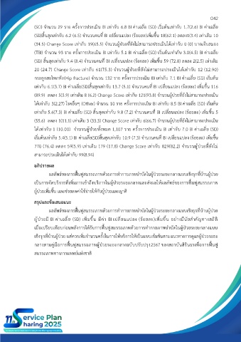 เท่ากับ 6.1(3.7) BI ค่าเฉลี่ย(SD)สิ้นสุดเท่ากับ 13.7 (5.1) จำนวนคนที่ BI เปลี่ยนแปลง (ร้อยละ) เพิ่มขึ้น 116