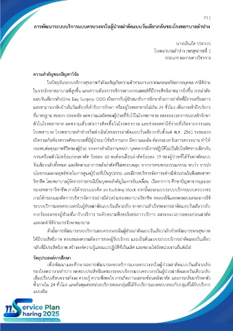 ระบบบริการแบบครบวงจรในผู้ป่วยผ่าตัดแบบวันเดียวกลับ จากความสำเร็จของการผ่าตัดแบบวันเดียวกลับ