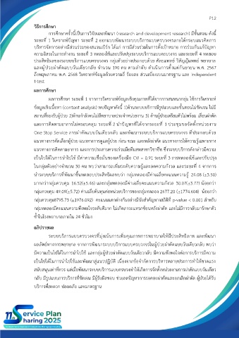 นำระบบบริการที่พัฒนาขึ้นทดสอบประสิทธิผลพบว่า กลุ่มทดลองมีค่าเฉลี่ยคะแนนความรู้ 24.08 (±3.50)