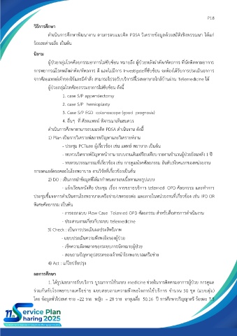 ดำเนินการศึกษาตามกรอบแนวคิด PDSA ดำเนินงาน ดังนี้