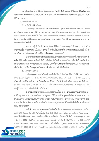 แสดงให้เห็นว่าโรงพยาบาลสามารถสร้างรายได้จากการจัดบริการศัลยกรรมได้ ดังนี้ Colonoscopy Adj RW